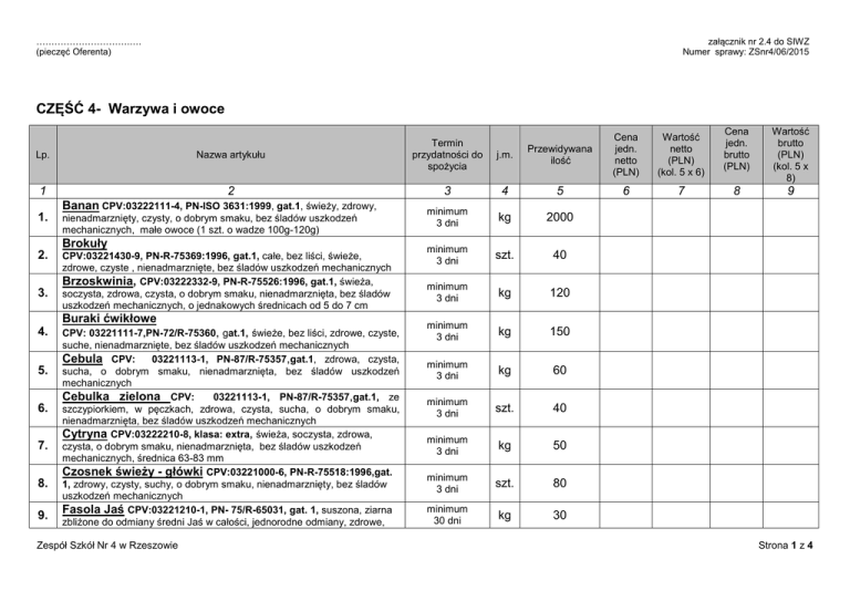 zał nr 2.4 WARZYWA - Zespół Szkół nr 4 w Rzeszowie