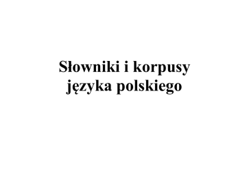 Słowniki i korpusy języka polskiego Leksykografia opracowywanie słowników, słownikarstwo nauka o metodach i technice opracowywania słowników Słownik – zbiór słów lub wyrażeń ułożonych i opracowanych według jakiejś zasady. Dzieli się na artykuły hasłowe ułożone w porządku alfabetycznym, rzadko tematycznym. Rodzaj słownika określa zasadę budowy artykułu hasłowego i sposób uporządkowania. Kwalifikator – skrót podawany przed definicjami w słowniku, encyklopedii zawierający informację o zakresie używania danego wyrazu lub jego różnorodnym nacechowaniu, np. stylistycznym, chronologicznym, ekspresywnym (Engelking, Markowski, Weiss 1989, 300) Stosowane są różnego rodzaju kwalifikatory – najczęściej we wstępie do danej publikacji można znaleźć ich opis. Rodzaje słowników jednojęzycznych • • • • • • • • • • • • ogólny języka polskiego ortograficzny języka frazeologiczny terminologiczny (np. prawniczy) grup społecznych i zawodowych etymologiczny częstotliwościowy (frekwencyjny) synonimiczny onomastyczny skrótów ortoepiczny wyrazów bliskoznacznych itd. Rodzaje kwalifikatorów • Kwalifikatory chronologiczne: daw., przestarz. • Kwalifikatory frekwencyjne: rzadziej • Kwalifikatory dotyczące zasięgu użycia innego niż zasięg czasowy – Zasięg sytuacyjny/stylistyczny: książk., pot., urzęd., – zasięg geograficzny: białost., krak., lubel. – zasięg środowiskowy: młodz., przestęp., • Kwalifikatory specjalistyczne, odsyłające do dziedziny działalności ludzkiej, w tym wiedzy fachowej lub nauki: - odsyłające do konkretnej dziedziny: anat., archeol., med., bank., bibliot., biol., biznes., chem., ekon., filoz., geogr., inform., zool., itd. - Odsyłające do grupy dziedzin: techn., nauk., kultur., • Kwalifikatory ekspresywne, informujące o treści emocjonalnowartościującej jednostki: pogard., pejorat., wulg., żart., iron. (Kurkiewicz 2007, 44-45) Najnowsze słowniki języka polskiego Słownik języka polskiego pod red. Mieczysława Szymczaka (1978) • Najpopularniejszy ogólny słownik dostępny w licznych wariantach • 3 tomy • zawiera około 80 000 haseł: wyrazy używane powszechnie, terminy specjalistyczne. • Podaje także frazeologię, przykłady użycia, informacje fleksyjne , kwalifikatory zakresowe i stylistyczne, najważniejsze synonimy i informacje etymologiczne. Słownik współczesnego języka polskiego pod red. Bogusława Dunaja (1996) • słownik jednotomowy • obejmuje ponad 62 000 haseł • uwzględniono w nim słownictwo specjalistyczne (tylko najbardziej rozpowszechnione). • zawiera niektóre wyrazy potoczne i środowiskowe, słownictwo dawne, dotyczące realiów i kultury wcześniejszych epok i sporo wyrazów nowych Nowy słownik języka polskiego PWN pod red. Mirosława Bańki (2000) • jednotomowy • obejmuje objaśnieniami około 100 000 jednostek leksykalnych • Każda jednostka leksykalna jest zaopatrzona w informację gramatyczną, rejestr synonimów i antonimów w postaci przypisów na marginesach, oraz informacje z zakresu pragmatyki językowej. • Innowacją są kontekstowe definicje, formułowane naturalną polszczyzną Uniwersalny słownik języka polskiego pod red. Stanisława Dubisza (2003) • cztery tomy • koncentruje się na opisie słownictwa polszczyzny ogólnej drugiej połowy XX w. • obejmuje ok. 100 000 jednostek hasłowych oraz kilkaset tysięcy zestawień terminologicznych, frazeologizmów i przysłów • Wprowadza wiele nowego – opis słownictwa wg zasady klasyfikacji na nacechowane i nienacechowane, podawanie podstaw etymologicznych wyrazów pochodzenia obcego, definiowanie treści przysłów, podawanie schematów typowych połączeń składniowych, informacji dotyczących pisowni, wymowy i pragmatyki. Szeroko uwzględnia słownictwo potoczne, wtręty o genezie obcojęzycznej, formy najczęściej stosowanych skrótowców. Popularny słownik języka polskiego (2007) • zawiera 30 000 podstawowych, używanych na co dzień wyrazów i zwrotów a także wybrane związki frazeologiczne oraz wskazówki poprawnościowe • dobór i opracowanie haseł jest wynikiem pracy zespołu językoznawców Uniwersytetu Jagiellońskiego pod kierunkiem Bogusława Dunaja Nowy słownik poprawnej polszczyzny pod red. Andrzeja Markowskiego (1999) • jednotomowy • ok. 31 000 haseł • największy słownik poprawnościowy, oprócz ułożonych alfabetycznie haseł z objaśnieniem poprawnego użycia i wskazaniem najczęstszych błędów zawiera artykuły przeglądowe dotyczące różnych zagadnień poprawnościowych • W osobny blok wydzielone nazwy geograficzne skróty i skrótowce i nazwiska Inny słownik języka polskiego pod red. Mirosława Bańki (2000) • Ok. 100 000 jednostek • Obszerny ogólny słownik języka polskiego • wyróżnia się innym od tradycyjnego sposobem definiowania znaczenia słów (sposób ten może być szczególnie przydatny m. in. w nauce języka polskiego przez cudzoziemców) Praktyczny słownik współczesnej polszczyzny pod red. Haliny Zgółkowej (1994) • Wydawany od 1994, 50 tomów • prezentuje zasób leksykalny znajdujący już opis we wcześniejszych opracowaniach i sumujący rejestr słownictwa polskiego końca XX w. • zawiera sporo słów obcego pochodzenia • adresowany do najszerszego kręgu odbiorców Wielki słownik języka polskiego • trwają nad nim prace – polszczyzna po 1945 r. (Żmigrodzki, Przybylska) • Tylko w wersji elektronicznej • Źródłem komputerowe korpusy języka polskiego Internetowe korpusy języka polskiego • Korpus językowy to zbiór tekstów, w którym szukamy typowych użyć słów i konstrukcji oraz innych informacji o ich znaczeniu i funkcji. Bez dostępu do korpusu nie da się dziś prowadzić badań językoznawczych, pisać słowników ani podręczników języków obcych, tworzyć wyszukiwarek uwzględniających polską odmianę, tłumaczy komputerowych ani in