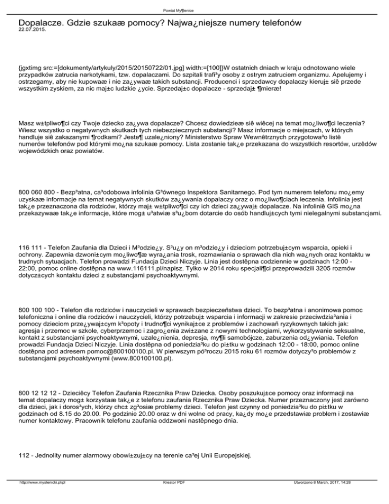 temat dopalaczy mog± korzystaæ tak¿e z telefonu zaufania Rzecznika Praw Dziecka. Numer przeznaczony jest zarówno