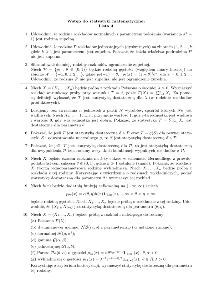 10. Niech X = (X1 , ..., Xn ) będzie próbą z rozkładu należącego do rodziny: