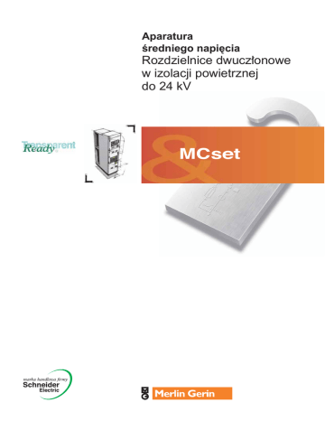 Aparatura Êredniego napi´cia Rozdzielnice dwucz∏onowe w izolacji powietrznej do 24 kV MCset Spis tre ci Gama MCset do 24 kV 2 Jako – rodowisko......................................................................7 Budowa rozdzielnicy...................................................................... 8 Celka z wy cznikiem typu LF (z SF6)...........................................9 Celka z wy cznikiem typu Evolis (pró niowy).............................10 Charakterystyki elektryczne..........................................................11 Warunki eksploatacyjne...............................................................12 Bezpiecze stwo obs ugi...............................................................13 Zastosowania specyficzne...........................................................14 Dobór pól / schematów ideowych................................................ 15 Prezentacja Gama MCset Wyposa enie, charakterystyki Pola dop ywowe/odp ywowe AD z aparatur SF6....................... 16 Pola sprz g owe CL/GL z wy cznikami SF6.............................. 17 Pola odp ywowe DI z roz cznikiem SF6 + bezpieczniki ............ 18 Pola TT, pomiarowe i uziemiaj ce.............................................. 19 Pola dop ywowe/odp ywowe AD z aparatur pró niow ............ 20 Pola sprz g owe CL/GL z wy cznikami pró niowymi................ 21 22 Motorpact – rozruszniki SN ze stycznikami pró niowymi Celka po rednicz ca MCset-Motorpact...................................... 23 Zabezpieczenia, monitoring, sterowanie Diagnostyka termiczna................................................................ 24 Zabezpieczenie cyfrowe. Rodzina Sepam.................................. 25 Sepam 2000, Sepam 100............................................................ 28 Sepam 2000. Tabela doboru....................................................... 27 Sepam 20, Sepam 40 i Sepam 80.............................................. 28 Sepam 20, 40 i 80. Tabela doboru.............................................. 29 Przek adniki pr dowe...................................................................30 Przek adniki napi ciowe.............................................................. 32 Przek adniki specjalne................................................................. 33 Aparatura z SF6 i bezpieczniki Cz ony wysuwne.......................................................................... 34 Rodzaje cz onów wysuwnych...................................................... 35 Cz ony wysuwne – wy czniki LF................................................ 36 Charakterystyki wy czników LF w celkach MCset..................... 37 Cz ony wysuwne – wy czniki SF................................................ 40 Charakterystyki wy czników SF w celkach MCset.................... 41 Cz ony wysuwne – styczniki Rollarc............................................ 44 W a ciwo ci elektryczne styczników R400/R400D..................... 45 Roz cznik do celek DI................................................................ 48 Bezpieczniki do celek DI i AD ze stycznikami............................. 50 Aparatura pró niowa Cz ony wysuwne.......................................................................... 51 Rodzaje cz onów wysuwnych...................................................... 52 Cz ony wysuwne – wy cznik Evolis............................................ 53 Charakterystyki wy czników Evolis w celkach MCset................54 Cz ony wysuwne – stycznik pró niowy........................................ 56 Wózki zewn trzne do cz onów wysuwnych................................. 58 Przyk ad zabudowy MCset 1-2-3................................................. 59 Instalacja Przyk ad zabudowy MCset 4....................................................... 60 Po czenia kablowe..................................................................... 61 Przek∏adniki pràdowe. Tabela doboru......................................... 63 Za czniki Wyposa˝enie celek...................................................................... 64 66 Kilka referencji W celu u∏atwienia orientacji w prezentowanym materiale, wprowadzono dodatkowe oznakowanie. Znaki te najcz´Êciej umieszczone zosta∏y w górnym rogu strony: 1 Informacje dotyczà aparatów z SF6 lub celek MCset z tymi aparatami 2 Informacje dotyczà aparatów pró˝niowych lub celek MCset z tymi aparatami 1 Prezentacja Obszar zastosowa 63280 Rozdzielnice MCset dostosowane s do wszystkich wymaga zwi zanych z rozdzia em energii elektrycznej przy napi ciu do 24 kV MCset jest to dwucz onowa rozdzielnica w obudowie metalowej, dla zastosowa wn trzowych. Jest ona przeznaczona do realizacji cz ci rednionapi ciowej w stacjach WN/SN i rozdzielni SN/SN du ej mocy. MT20051 MCset zapewnia: rozwi zanie dostosowane do specyficznych potrzeb, zredukowan do minimum obs ug , lokalne centra wsparcia technicznego rozlokowane w ca ym wiecie MCset umo liwia: ci g o zasilania maksymalne bezpiecze stwo obs ugi i eksploatacji optymalne nak ady inwestycyjne w ca ym okresie eksploatacyjnym w czenie rozdzielnicy SN do systemu zdalnego nadzoru i sterowania. 87158 MT20052 Przyk adowe zastosowania Elektrownie Potrzeby w asne Rozdzielnice blokowe Przemys Petrochemia Inne przemys y chemiczne Metalurgia Przemys samochodowy Górnictwo Cementownie PE55540 Infrastruktura Porty lotnicze Porty morskie Szpitale Wodoci gi Gospodarka morska Statki pasa erskie Kontenerowce Tankowce Platformy wiertnicze Oferta obejmuje aparaty z izolacjà pró˝niowà i z SF6 Oferta MCset obejmuje wy∏àczniki pró˝niowe (rodzina Evolis) i styczniki pró˝niowe oraz wy∏àczniki z SF6 (LF, SF) i styczniki (Rollarc). Aparaty te zapewniaj : najwy˝szà trwa∏oÊç mechaniczn i elektryczn , kompletn gam charakterystyk maksymalne bezpiecze stwo u ytkowania ca kowit neutralno wobec rodowiska 2 2 Prezentacja Ci g o zasilania z pe nym bezpiecze stwem MCset, rozdzielnica b´dàca wynikiem doÊwia