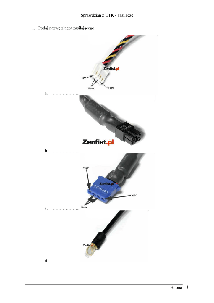 Sprawdzian z UTK - zasilacze Strona 1 1. Podaj nazwę złącza