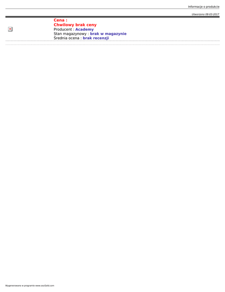 Informacje o produkcie Utworzono 08-03-2017 Cena : Chwilowy brak ceny Producent : Academy Stan magazynowy : brak w magazynie Średnia ocena : brak recenzji Wygenerowano w programie www.oscGold.com
