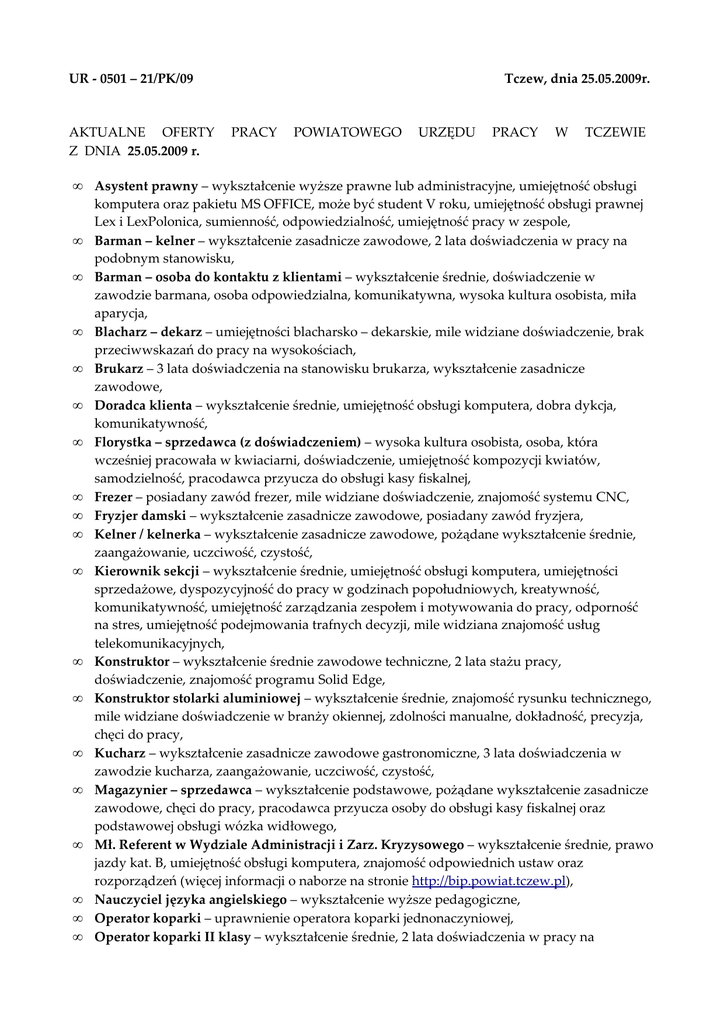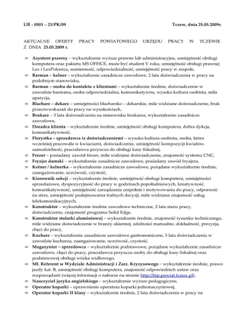 UR - 0501 – 21/PK/09 Tczew, dnia 25.05.2009r. AKTUALNE