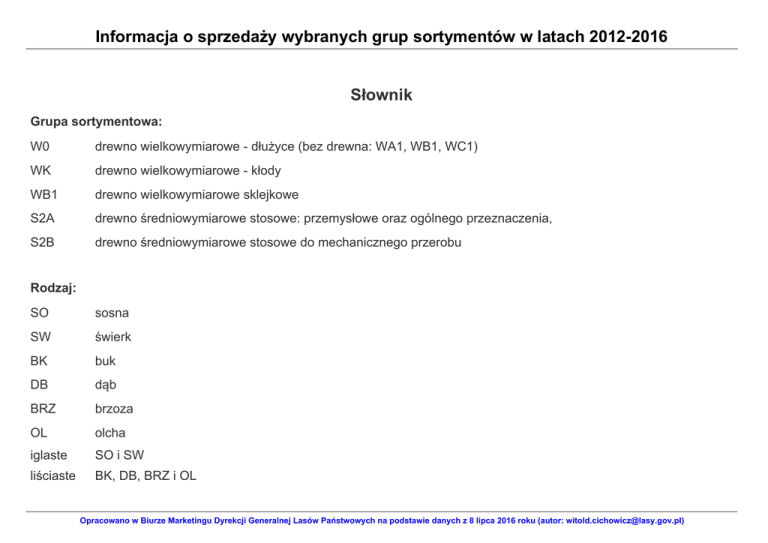 Informacja o sprzedaży wybranych grup sortymentów od 2012 r. do