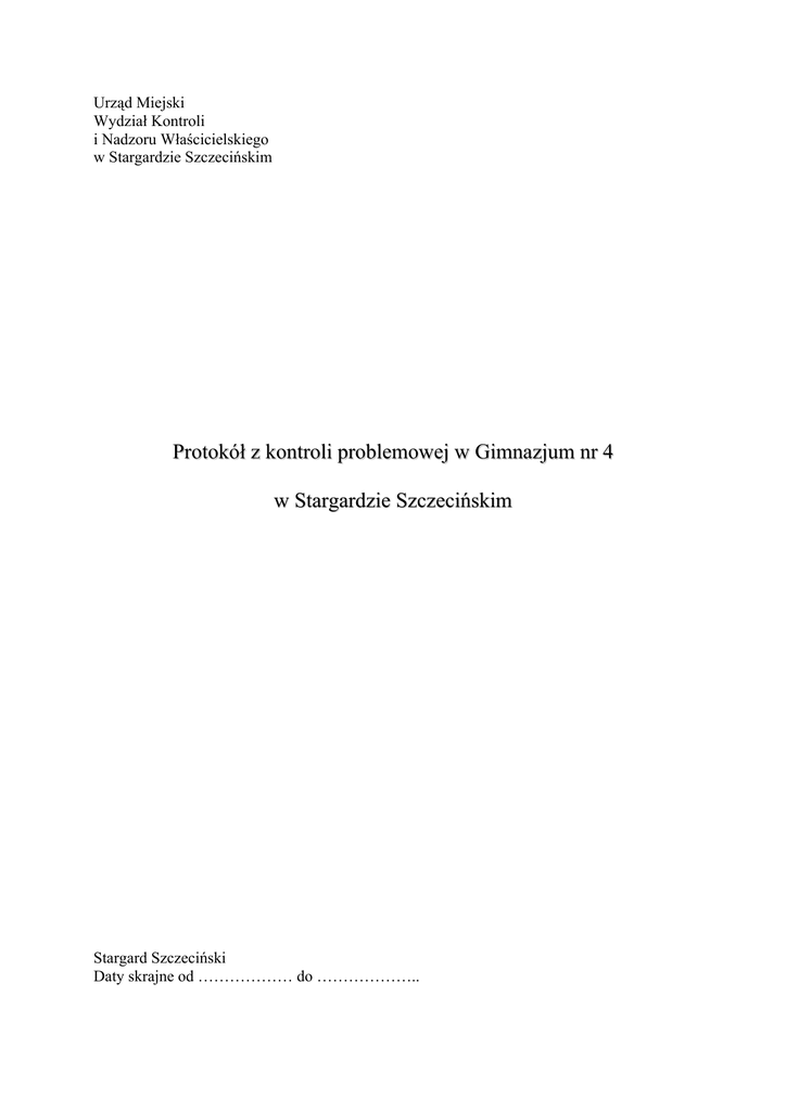 Urząd Miejski Wydział Kontroli i Nadzoru Właścicielskiego w Stargardzie Szczecińskim Protokół z kontroli problemowej w Gimnazjum nr 4 w Stargardzie Szczecińskim Stargard Szczeciński Daty skrajne od ……………… do ……………….. Urząd Miejski w Stargardzie Szczecińskim Wydział Kontroli i Nadzoru Właścicielskiego MK.2,5/0912-8/2006 - do użytku zewnętrznego - Protokół Z kontroli problemowej w Gimnazjum nr 4 w Stargardzie Szczecińskim na Os. Zachód B15, w okresie od 10.05.2006 r. do 29.05.2006 r. przez Wydziału Kontroli i Nadzoru Właścicielskiego oraz młodszego referenta Wydziału Kontroli i Nadzoru Właścicielskiego działające na podstawie upoważnienia nr 09/2006 z dnia 08.05.2006 roku Prezydenta Miasta Stargardu Szczecińskiego do przeprowadzenia kontroli. Dyrektorem Gimnazjum nr 4 jest Henryka Mamrot, której funkcję powierzono Uchwałą nr 212/2001 Zarządu Miasta Stargardu Szczecińskiego z dnia 30 maja 2001 r. w sprawie powierzenia stanowiska dyrektora Gimnazjum nr 4 w Stargardzie Szczecińskim na okres od dnia 01 września 2001 r. do dnia 31 sierpnia 2006 r. Główną księgową w Gimnazjum nr 4 jest Bożena Wudarska zatrudniona od 01.04.2004 r. w pełnym wymiarze czasu pracy. Zakres kontroli: 1. Wydatki rzeczowe za 2005 r. 2. Rozliczenie środków na wydatki budżetowe za luty 2006 r. 3. Zakładowy Fundusz Świadczeń Socjalnych w roku 2005. W trakcie kontroli wyjaśnień udzielała: - Bożena Wudarska – główna księgowa, - Grażyna Rz. – kierownik administracyjno – gospodarczy. 2 1. Wydatki rzeczowe za 2005 r. Szczegółowej kontroli poddano II półrocze 2005 roku. Temat ten zbadano w oparciu o dokumenty źródłowe tj.: faktury, polecenia wyjazdu służbowego, wyciągi bankowe, urządzenia księgowe, sprawozdawczość. 1.1. Środku budżetowe na realizację wydatków w dziale 801 – Oświata i wychowanie w rozdziale 80110 przeznaczono na: 1.1.1. Wydatki osobowe niezaliczone do wynagrodzeń § 3020 ( plan 6.459,00 zł, wykonanie 6.458,84 zł ) w tym wydatki za II półrocze 3.177,42 zł. Wydatki obejmowały zakup świadczeń rzeczowych wynikających z przepisów BHP: - zakup obuwia profilaktycznego oraz sportowego, fartuchów, koszulek, bluz, dresów dla pracowników szkoły 2.437,13 zł - zakup herbaty dla pracowników, którą wydano wg. list za pokwitowaniem odbioru 740,29 zł Zakupiona odzież ewidencjonowana była na imiennych kartotekach wyposażenia. 1.1.2. Zakup materiałów i wyposażenia § 4210 ( plan 61.845,00 zł, wykonanie 61.844,93 zł ) w tym wydatki za II półrocze 37.061,00 zł, które obejmowały: - wydatki poniesione na potrzeby pływalni w tym: - zakup środków chemicznych do usuwania osadu, oraz podchlorynu sodu do chlorowania wody - oprawy elektryczne, przewody, kołki - wentylator dachowy, lampa rtęciowa - skrzydło drzwiowe - płyty na ławki - płytki do remontu łazienek i korytarza - zestaw naprawczy natrysku - głowica natryskowa wraz z zaworem - dławnica do pompy 13.264,20 zł 1.373,23 zł 2.394,25 zł 1.161,88 zł 1.043,10 zł 695,76 zł 3.973,86 zł 295,73 zł 1.778,61 z ł 547,78 zł - zakup materiałów na potrzeby konserwatora ( zaprawy, emulsje, farby, kleje, rozcieńczalniki, pędzle, brzeszczoty, śruby, opaski, kołki, zamki, uchwyty, kątowniki, kable, klucze, filtry, paski klinowe, gniazda, gwoździe, wkładki, żarówki, siatki ścierne, pokrętła itp. ) 5.886,52 zł - środki czystości na bieżące potrzeby szkoły ( proszki, płyny, pasty do podłóg, worki na śmieci, kosze, ścierki, rękawice, mydła, druciaki, spirale, wiadra, miotły itp. ) 4.176,67zł 3 - materiały na wyposażenie apteczki 97,50 zł - prenumerata czasopism ( Aktualizacja „Ubezpieczenia w praktyce”, „Eko świat”, „Viktor - Gimnazjalista”, „ Głos Szczeciński”, „Głos Nauczyciela”, „ Poznaj swój kraj”, „ Matematyka w szkole” itp) 1.194,89 zł - materiały biurowe ( tusz do drukarek, toner do kserokopiarek , papier do kserokopiarek, gumki, długopisy, kleje, koperty, bruliony, spinacze, segregatory, zszywki, koperty, korektory, karta sieciowa, zakreślacze, księga główna, druki ewidencyjne, wkłady do długopisów itp.) 2.757,79 zł - zakup wyposażenia w tym: - komputer - krzesła do sal lekcyjnych - czajnik bezprzewodowy - młotowiertarka - wózki z wyciskarką ( 2 sztuki ) - kalkulator - półka biurowa 9.683,43 zł 2.500,00 zł 5.160,60 zł 229,99 zł 695,00 zł 980,00 zł 52,11 zł 65,73 zł 1.1.3. Zakup książek i pomocy dydaktycznych § 4240 ( plan 6.939,00 zł, wykonanie 6.938,74 zł ) w tym wydatki za II półrocze 3.254,74 zł, które obejmowały: - zakup mapy unijnej - cyrkiel tabliczny, trójnóg z cyrkla, bryły obrotowe, bryły prawidłowe, bryły wpisane ) 255,00 zł 2.999,74 zł 1.1.4. Zakup energii § 4260 ( plan 541.658,00 zł, wykonanie 541.658,44 zł ) w tym wydatki za II półrocze 204.841,32 zł, które obejmowały: - zakup energii cieplnej 140.467,19 zł - zakup energii elektrycznej 41.938,39 zł - zakup wody 21.654,48 zł - zakup gazu 781,26 zł 4 1.1.5. Zakup usług remontowych § 4270 ( plan 130.001,00 zł, wykonanie 130.000,13 zł ) w tym wydatki za II półrocze 126.401,25 zł , które obejmowały: - wykonanie remontu sześciu sanitariatów - zabudowa aluminium, montaż drzwi wejściowych ( 2 szt. ) - zabezpieczenie 4 sztuk okien kratami oraz wykonanie i montaż kraty przy schodach 105.901,55 zł 15.700,00 zł 3.397,70 zł - wykonanie pomiarów elektrycznych 853,00 zł - naprawa pralki 305,00 zł - konserwacje systemu alarmowego i kserokopiarki 244,00 zł Zamówienie publiczne dotyczące remontu sześciu sanitariatów w budynku Gimnazjum nr 4 ( 105.901,55 zł ) realizowane było w trybie przetargu nieograniczonego. Postępowanie przeprowadzone zostało w oparciu o Ustawę z dnia 29 stycznia 2004 r. Prawo Zamówień Publicznych ( Dz. U. nr 19 poz. 177 ), zakres zamówienia obejmował: - wymianę stolarki okiennej i drzwiowej, - wymianę okładzin ście