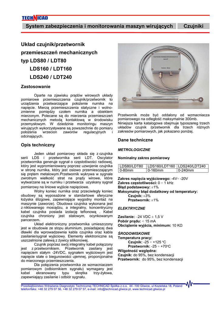 Układ czujnik - przetwornik LDS-LDT80,160240