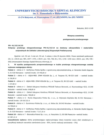 Pakiet 1 - oferta nr 4 - bioMerieux Polska Spolka z ograniczona. odpowiedzialnosdq, ul. Generate Jozefa Zaja.czka