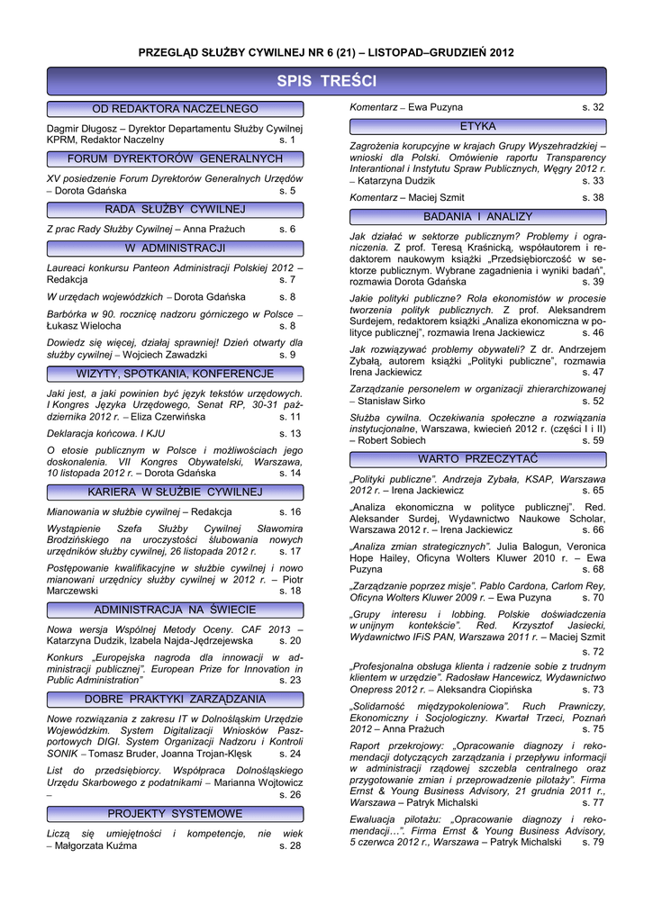Pobierz spis treści - Serwis Służby Cywilnej