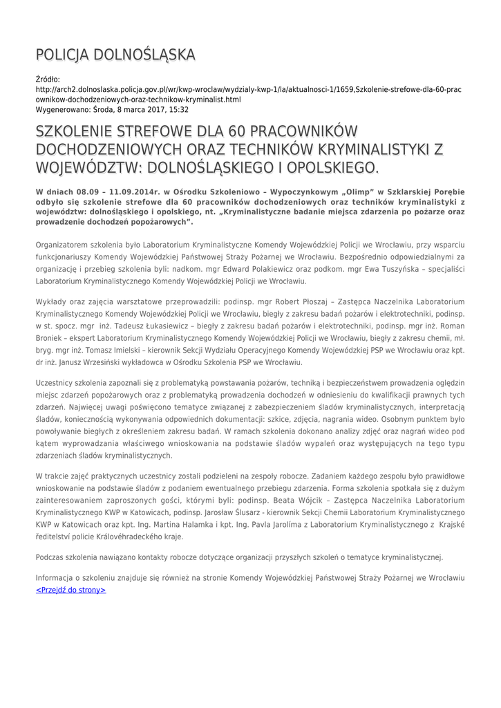 POLICJA DOLNOŚLĄSKA SZKOLENIE STREFOWE DLA 60