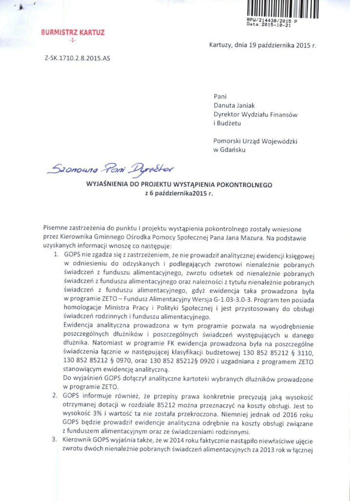 3. Kierownik GOPS wyjasnia takze, ze w 2014 roku faktycznie nast^pifo niewtasciwe uj^cie