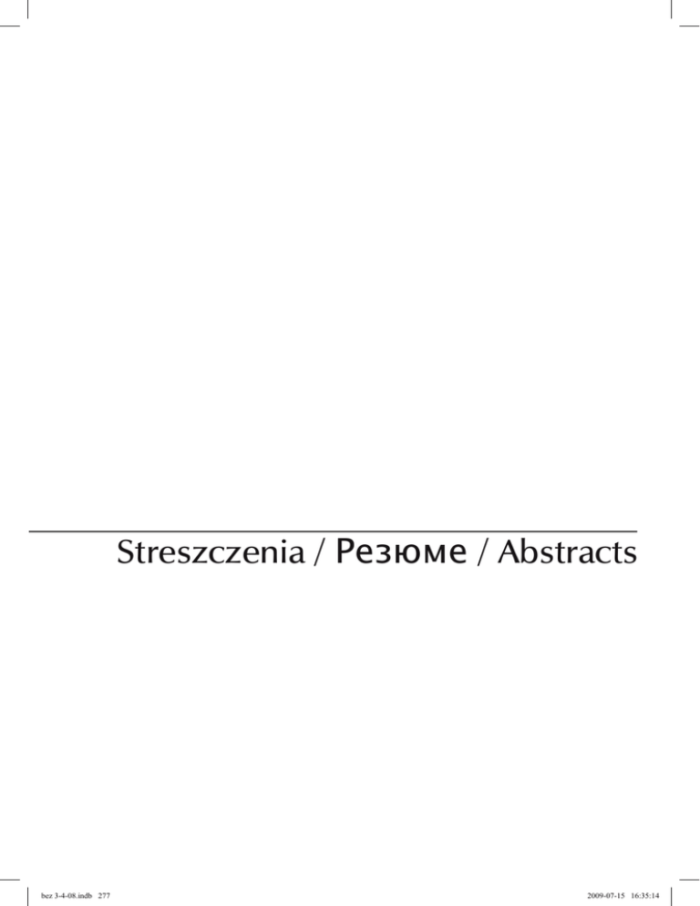 Streszczenia / Peзюме / Abstracts - Bezpieczeństwo. Teoria i Praktyka