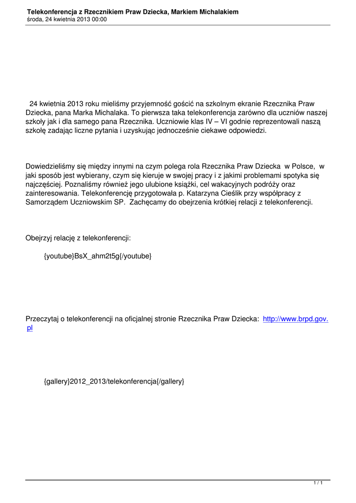 Przeczytaj o telekonferencji na oficjalnej stronie Rzecznika Praw Dziecka: http://www.brpd.gov.