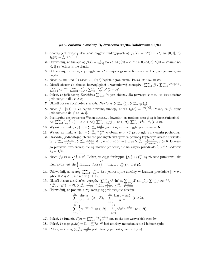 15. Zadania z analizy B, ćwiczenia 26/03, kolokwium 01
