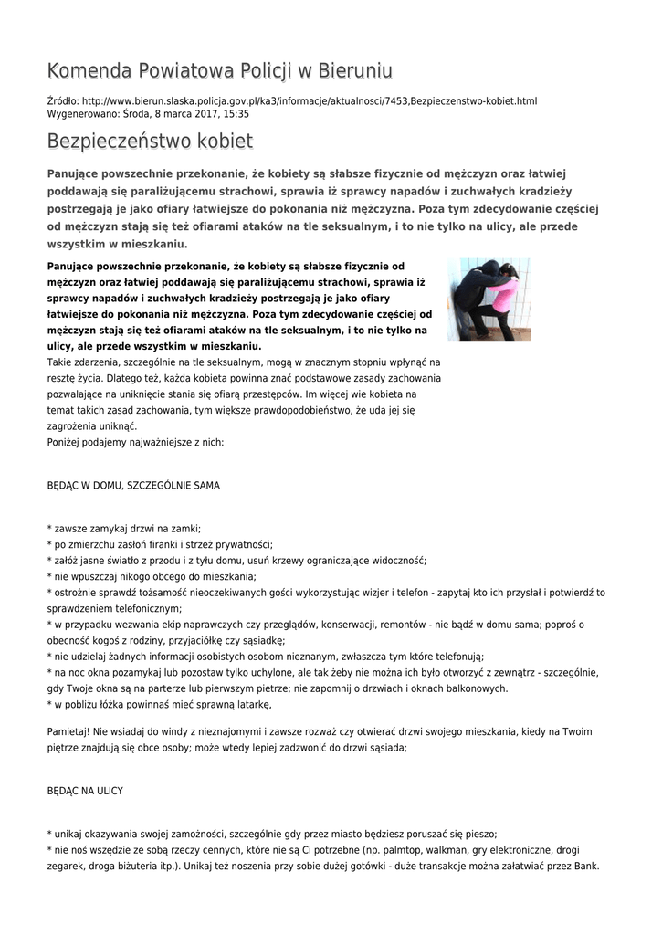 Komenda Powiatowa Policji w Bieruniu Bezpieczeństwo kobiet