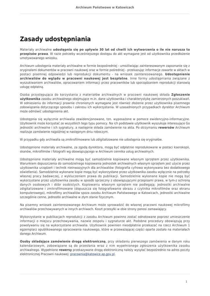 Zasady udostępniania - Archiwum Państwowe w Katowicach