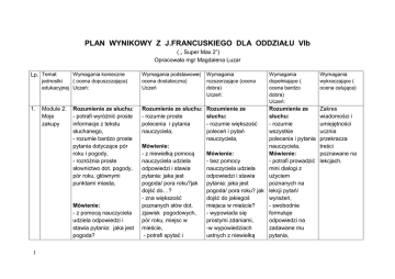 plan wynikowy z francuskiego klasa 6 b