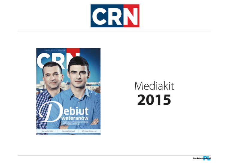Mediakit 2015 Słowo wstępu CRN Polska to nowoczesny magazyn biznesowy przeznaczony dla firm sprzedających i wdrażających technologie informatyczne. Na co dzień pomagamy im w rozwoju biznesu na niezwykle szybko zmieniającym się rynku IT. CRN Polska to źródło wiedzy o najnowszych trendach rynkowych, wydarzeniach, roszadach personalnych i innych kluczowych kwestiach z punktu widzenia naszych czytelników. Stawiamy na wysoki poziom merytoryczny prezentowanych treści zarówno w papierowym wydaniu CRN Polska, jak również na portalu CRN.PL. Dzięki temu od 17 lat jesteśmy liderem w swoim segmencie rynku. Dzięki doświadczonym, pełnym pasji autorom oraz najlepszym felietonistom w branży IT jesteśmy medium opiniotwórczym i mamy wpływ na rozwój polskiego rynku IT. Naszym siostrzanym tytułem, który wprowadziliśmy na rynek prasowy w 2013 roku, jest Vademecum VAR-ów i integratorów skierowany do firm informatycznych, które chcą się rozwijać w segmencie najbardziej zaawansowanych technologii IT. Tomasz Gołębiowski redaktor naczelny wstęp Informacje o tytule Czym jest CRN Polska? CRN to światowa marka wydawana na kilku kontynentach (po raz pierwszy w USA 33 lata temu, na polskim rynku od 1998 roku). Magazyn dociera do kadry zarządzającej firm informatycznych i stanowi dla nich źródło wiedzy na temat rynkowych trendów. CRN Polska to: • Biznesowy, opiniotwórczy miesięcznik ułatwiający menedżerom IT podejmowanie właściwych decyzji biznesowych. • Zaufany partner medialny największych marek technologicznych na polskim rynku. • Tytuł pierwszego wyboru dla zagranicznych koncernów IT, które chcą rozpocząć działalność w Polsce. • Aktualizowany na bieżąco, największy w swoim segmencie rynku, branżowy portal internetowy. o tytule Zawartość magazynu inne 8% trendy w biznesie 25% opinie 10% badania rynkowe 10% aktualności branżowe 20% raporty sprzętowe 12% wywiady VIP 15% o tytule Online online facebook CRN.pl fan page 788 fanów 144 135 odsłon 49 818 unikalnych użytkowników (stan na 12.01.2015) (w grudniu 2014) Formaty i cennik rozkładówka cała strona Junior page 2 x (5+197+5) (5+197+5) x (5+265+5) mm x (5+265+5) mm (5+122+5) 1/2 strony poziom 1/2 strony pion 1/3 strony pion (5+197+5) (5+92+5) (5+62+5) x (5+265+5) mm x (5+130+5) mm x (5+265+5) mm x (5+189+5) mm 1/3 strony poziom (5+197+5) x (5+84+5) mm rozkładówka II okładka III okładka IV okładka cała strona junior page 1/2 strony 1/3 strony 1/4 strony wyspa Reklama w pierwszej 1/3 pisma 1/4 strony (5+197+5) (5+92+5) x (5+67+5) mm * reklama bez spadów formaty i cennik x (5+130+5) mm Reklama przy wybranym materiale wyspa* 86 x 130 mm 22 000 zł 20 000 zł 24 500 zł 16 500 zł 13 500 zł 11 500 zł 7 500 zł 6 000 zł 9 500 zł Dopłaty Reklama w pierwszej 1/2 pisma 1/4 strony poziom 28 000 zł Drugi reklamodawca 15% 30% 15% 10% Inne niestandardowe reklamy na podstawie odrębnych kalkulacji. Do cen należy dodać podatek VAT w obowiązującej stawce. Harmonogram wydawniczy harmonogram Numer wydania Termin dostarczenia materiałów Pierwszy dzień sprzedaży 1/2015 2/2015 3/2015 4/2015 5/2015 6/2015 7/2015 8/2015 9/2015 10/2015 11/2015 12/2015 14.01.2015 11.02.2015 11.03.2015 08.04.2015 13.05.2015 10.06.2015 08.07.2015 19.08.2015 16.09.2015 07.10.2015 04.11.2015 25.11.2015 28.01.2015 25.02.2015 25.03.2015 22.04.2015 27.05.2015 24.06.2015 22.07.2015 02.09.2015 30.09.2015 21.10.2015 18.11.2015 09.12.2015 Cennik reklam online REKLAMA ROZMIARCENA banner 468x60 px 250 zł CPM large/medium rectangle 300x250 px 350 zł CPM billboard 750x100 px 350 zł CPM skyscraper 160x600 px 250 zł CPM toplayer 400x400 px 550 zł CPM mailing do bazy CRN 1,50 zł za rekord banner w newsletter do bazy CRN 350 zł CPM Dane techniczne i zasady przyjmowania reklam Format netto 197x265 mm Pliki PDF (format preferowany) Photoshop: TIFF, EPS, 300 dpi, CMYK Illustrator: EPS, CMYK, teksty zamienione na krzywe Total Ink Limit (TIL) maks. 320% Spady min. 5 mm; minimalna odległość istotnych elementów od linii cięcia: 4 mm Nośniki CD Pliki do 10 MB e-mail: [email protected] ftp://ftp.burdamedia.pl/ login: reklama hasło: burdamedia Druk offset Szczegółową specyfikację techniczną przesyłamy na życzenie klienta. W razie pytań technicznych prosimy o kontakt: Łukasz Lewandowski, tel. +48 22 360 37 13, e-mail: [email protected] dane techniczne Szczegółowe warunki sprzedaży powierzchni reklamowej, w tym procedury zamawiania, publikacji oraz emisji ogłoszeń i/lub reklam w czasopismach wydawanych przez Burda Media Polska Sp. z o.o. oraz Spółki z grupy Burda Polska, tj. Burda Communications Sp. z o.o., Burda Publishing Polska Sp. z o.o. Sp. Komandytowa, Burda GL Polska Sp. z o.o. oraz Burda NG Polska Sp. z o.o. Sp. Komandytowa, określone są w Regulaminie Zamieszczania Reklam i Ogłoszeń, dostępnym pod adresem www.burdamedia.pl Dlaczego prasa 1 2 Prasa angażuje – czytanie odbywa się w skupieniu; trudno przy lekturze prasy oddawać się jednocześnie innym czynnościom. twa i badania konsumenckie pozwalają na precyzyjne opisanie czytelnika i tym samym dobre dopasowanie medium do reklamowanych produktów. Prasa buduje wiarygodność – poprzez „towarzyszenie” czytelnikom i „rozmawianie” z nimi (poprzez e-maile, listy, ankiety, komentarze, polemiki) prasa ma opinię doradcy, który umożliwia dokonywanie wyboru. Zaufanie, jakim darzą czytelnicy swoje tytuły i ich wiarygodność wzmacniają przekaz reklamowy. 5 3 Prasa pogłębia przekaz – poprzez umieszczanie w reklamie pogłębionego komunikatu odbiorca może dowiedzieć się więcej o produkcie. Reklamy prasowe mogą świadomie prezentować inne treści i formy wyrazu niż reklama w innych mediach. W ten sposób reklama prasowa może wzmacniać i modyfikować wizerunek produktu. 4 Prasa dociera precyzyjnie – bogactwo tematyczne prasy oraz szeroko zakrojone badania czytelnic- benefity Prasa to medium kreatywne – oferta dla rekla
