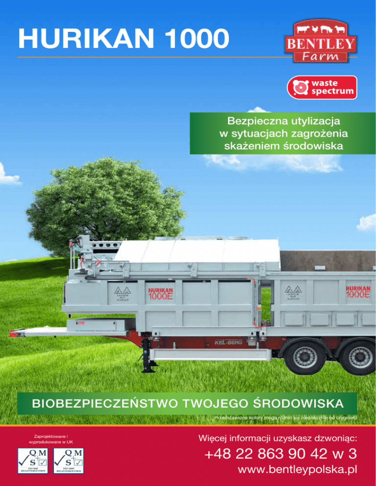 HURIKAN 1000 Bezpieczna utylizacja w sytuacjach zagrożenia skażeniem środowiska BIOBEZPIECZEŃSTWO TWOJEGO ŚRODOWISKA Przedstawione kolory mogą różnić się nieznacznie od oryginału Zaprojektowane i wyprodukowane w UK QM QM S S ISO 9001 REGISTERED FIRM ISO 14001 REGISTERED FIRM Więcej informacji uzyskasz dzwoniąc: +48 22 863 90 42 w 3 www.bentleypolska.pl MOBILNY PIEC DO UTYLIZACJI MARTWYCH ZWIERZĄT Piec Hurikan 1000 to niezwykle wytrzymały piec przystosowany do spopielania różnych gatunków martwych zwierząt, wykorzystywany w sytuacjach awaryjnych, zagrożenia skażeniem środowiska lub innych nagłych przypadków. Urządzenie jest idealnym rozwiązaniem w sytuacjach, gdy w krótkim czasie muszą zostąć spopielone duże ilości mater,iału. Dużym atutem jest jego mobilność, co umożliwia natychmiastowe i bezproblemowe przetransportowanie pieca w miejsca wystąpienia chorób (ptasia grypa, pomór świń itp), epidemii lub katastrof żywiołowych. Piec jest również dobrym rozwiązaniem w przypadku utylizacji odpadów medycznych, materiałów skażonych oraz nielegalnie przewożonych (np. leków czy narkotyków). Pomimo dużych rozmiarów, urządzenie jest bardzo proste w obsłudze i nie wymaga specjalistycznej wiedzy czy umiejętności. Duża pojemność komory (1000 kg) ładowanej od góry umożliwia spopielanie drobiu (nawet 20 000 szt. w ciągu doby), trzody chlewnej czy odpadów zwierzęcych z rzeźni i zakładów przetwórstwa mięsnego. Uruchomiony piec rozpoczyna szybkie spopielanie materiału zamieniając go w popiół, który może być w prosty sposób usunięty w każdej chwili. Przy zachowaniu odpowiednich wartości kalorycznych spalanych odpadów, Istnieje możliwośc osiągnięcia tempa spalania nawet do 3000 kg na godzinę. W pierwszej komorze zastosowano wysokiej klasy beton monolityczny, ogniotrwały o wysokim stopniu izolacji. Konstrukcja niezwykle trwała i wytrzymała - brak zastosowania cegieł, co zapewnia wysoką wydajność termiczną. Dzięki tzw. drugiej komory ”dopalacza” uzyskano minimalną emisję gazów, co powoduje, że piec jest zgodny również z normą ABPR 1069/2009 EU dotyczącą odpowiedniego usuwania materiałów zwierzęcych. Piec Hurikan 1000 jest prosty w obsłudze, wymaga ustawienia na twardej, stabilnej powierzchni. Wraz z urządzeniem dostarczana jest instrukcja obsługi zawierająca szczegóły na temat użytkowania, pielęgnacji oraz konserwacji sprzętu. HURIKAN 1000 Bentley Polska Sp. z o.o. ul. Czereśniowa 98 02-456 Warszawa tel. 22 863 90 42, Fax +48 22 863 90 13 e-mail: [email protected], www.bentleypolska.pl DLACZEGO WARTO KUPIĆ PIEC HURIKAN? • BIO-bezpieczeństwo działalności • Bezpieczeństwo środowiska • Ekonomiczne usuwanie odpadów • Niski koszt utrzymania • Prosta i szybka instalacja HURIkaN 1000 CAŁKOWITA DŁUGOŚĆ 11 163 mm CAŁKOWITA SZEROKOŚĆ 2 840 mm CAŁKOWITA WYSOKOŚĆ 5 620 mm MASA 20 000 kg WIELKOŚĆ WSADU METODA ZALADUNKU Do 5000 kg od góry 11,2 m3 OBJĘTOŚĆ KOMORY (całkowita) 6,2 m3 (powyżej paleniska) 2 900 mm WYSOKOŚĆ KOMORY (komora główna) 1 730 mm (komora “dopalacza”) TEMPO SPOPIELANIA STOSOWANE RODZAJE PALIWA 1000 kg/h Diesel, LPG DRUGA KOMORA DOPALACZA ✓ PODŁĄCZENIE ENERGII ELEKTRYCZNEJ ✓ PANEL KONTROLNY ✓ w pełni programowalny system PLC z cyfrowym wyświetlaczem KONTROLA RUSZT BETONOWY ✓ USUWANIE POPIOŁU ✓ Hurikan 1000 to stworzony z wysokiej jakości materiałów, bezkonkurencyjny piec do spopielania bardzo dużej ilości odpadów pochodzenia zwierzęcego. Umieszczony na przyczepie umożliwia transport pieca do trudno dostępnych miejsc wystąpienia chorób (np. BSE, pomór świń czy ptasia grypa), epidemii lub katastrof żywiołowych. Piec posiada unikalny system odpopielania i jest także świetnym rozwiązaniem do utylizacji dużych ilości martwych zwierząt na fermach drobiu oraz trzody chlewnej. Duże tempo spopielania Wynoszące 1000 kg na godzinę tempo spopielania oraz unikatowa metoda usuwania popiołu umożliwia spalenie 20 tysięcy sztuk drobiu w ciągu jednego dnia (przy średniej wadze 1,2 kg). W zależności od wartości kalorycznej odpadów, istnieje możliwośc osiągnięcia tempa spalania do 3000 kg na godzinę. Mobilność Urządzenie oferuje łatwy transport, co jest niezbędne w sytuacjach kiedy proces spalania ma odbywać się w trudno dostępnych miejscach. Może być przemieszczany dowolnym pojazdem przystosowanym do prowadzenia naczep. Szybkie uruchomienie Mobilna wersja pieca Hurikan 1000 umożliwia pełną pracę w ciągu 2 godzin od przybycia do miejsca spalania, nie pozwalając na rozprzestrzenienie się choroby oraz uniknięcie poniesienia dodatkowych kosztów pracy. Prosty w użyciu Automatyczny proces spopielania oraz manualne sterowanie załadunkiem za pomocą przycisku on/off umożliwia szybką oraz porostą obsługę pieca przez każdą osobę. Solidna konstrukcja METODA ODPOPIELANIA od frontu Piece Hurikan wykonane zostały z wysokiej jakości materiałów. ZGODNOŚĆ Z ROZP. EU 1069/2009 ✓ Zgodność z normą WERSJA MOBILNA ✓ GWARANCJA 12 miesięcy Piec Hurikan 1000 jest zgodny z normą ABPR 1069/2009 EU dotyczącej odpowiedniego usuwania materiałów pochodzenia zwierzącego. Waste Spectrum Environmental LTD i Bentley Polska dokładaja wszelkich starań aby dostarczać najnowocześniejsze rozwiązania zgodne z podanymi danymi. Dlatego też zastrzegamy mozliwość zmian technicznych bez wcześniejszej informacji. Zaprojektowane i wyprodukowane w UK QM QM S S ISO 9001 REGISTERED FIRM ISO 14001 REGISTERED FIRM Więcej informacji uzyskasz dzwoniąc: +48 22 863 90 42 w 3 www.bentleypolska.pl WERSJA PRO Oferta pieców w wersji PRO posiada wszystkie zalety oferowanych pieców serii Hurikan oraz dodatkowo konstrukcja PRO jest odporna na niezwykle wysokie temperatury i toksyny, które wiążą się ze spalaniem odpadów takich jak odpady medyczne i komunalne. We wszystkich naszych modelach pieców PRO jest