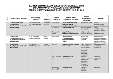 Harmonogram działań szkół ponadgimnazjalnych