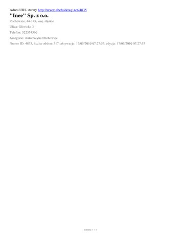 "Inee" Sp. z oo, Pilchowice, Gliwicka 3