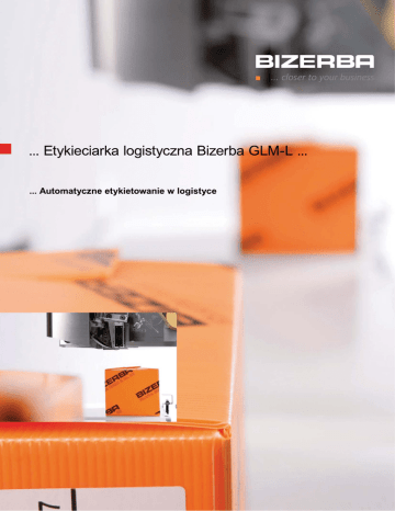 ... szerokie spektrum mo˃liwoʯci ... Istniejʇ trzy systemy aplikacji etykiet samoprzylepnych w trybie pracy ciʇgej oraz w trybie start/stop. Aplikacja nadmuchowa - góra opakowania/kartonu (GLM-L 1T) Mo˃liwoʯʉ jednoczesnej kontroli etykieciarek w sieci poprzez centralny terminal z ekranem dotykowym. Dokadne pozycjonowanie etykiety w kierunku taʯmy jest wyzwalane czasowo poprzez sygna generatora. Statyczne sygnay wejʯcia dla uruchomienia urzʇdzenia etykietujʇcego oraz rozpoczʒcia druku. - bok opakowania (GLM-L 1S) Aplikacja rotacyjna - bok, góra oraz przód opakowania/kartonu (GLM-L 1T) - bok opakowania (GLM-L 1S) Aplikacja stemplujʇca - góra opakowania/kartonu (GLM-L 1T) - bok opakowania/kartonu (GLM-L 1S) Prosta konfiguracja wszystkich istotnych danych on-line albo poprzez terminal dotykowy Bizerba GT-12C stempel stempel nadmuch nadmuch aplikacyjna rotacyjna aplikacja rotacyjna aplikacja rotacyjna aplikacja rotacyjna ... Szybkoʯʉ i inteligencja w etykietowaniu ... Kaligraficznie zaprojektowane etykiety wraz z obrazkami graficznymi o wysokiej jakoʯci mogʇ zostaʉ dostarczone z transponderem dla zwiʒszenia efektywnoʯci kontroli w aʤcuchu dostaw (ISO 15693/HF, EPCglobal/UHF). Inteligentne etykiety podnoszʇ jakoʯʉ produkcji, magazynowania i dystrybucji w logistyce. Twoja przewaga nad konkurencjʇ ... Wiʒksza wydajnoʯʉ, elastycznoʯʉ oraz przejrzystoʯʉ procesów poprzez wykorzystanie istniejʇcej infrastruktury IT. Radiowy kod kreskowy RFID Etykieta RFID oferuje wymierne korzyʯci: etykiety nie wymagajʇ wizualnego kontatu z czytnikiem istnieje mo˃liwoʯʉ modyfikacji etykiety w czasie jej identyfikacji istnieje mo˃liwoʯʉ pewnej identyfikacji etykiety nawet w przypadku gdy jest ona mokra albo brudna. Pozycja etykieciarki Rʒczne nastawy: wysokoʯʉ i bok (Opcjonalnie napʒd silnika dla GLM-L 1T) Wielkoʯʉ opakowania ■ W zale˃noʯci od aplikacji klienta Wyʯwietlacz/Klawiatura ■ Opcjonalnie GT-12C, GT-NT lub e-Service. Koncepcja dziaania ■ z jednym lub wieloma wyʯwietlaczami w lini lub w sieci. Drukarka ■ Bezpoʯrednio termiczna (opcja termotransfer) Wydajnoʯʉ etykietowania W zale˃noʯci od aplikacji klienta Konstrukcja ■ Stal szlachetna Warianty kodu kreskowego Rozdzielczoʯʉ 8 dot/mm (opcja 12 dot/mm) Szerokoʯʉ wydruku 80 mm (3.1") (Opcja 104 mm [4"] lub 168 mm [6.6"]), prʒdkoʯʉ wydruku 150 mm/s (5.9") (Opcja 250 mm/s [9.8"/s]), maks. szerokoʯʉ etykiety 170 mm (6.7") ■ Etykiety ■ EAN/UPC 8, EAN/UPC 13, EAN/UPC 128, Kod 39, 2/5 Int., ITF, ■ Min. 30 x 30 mm (1.2"x 1.2") (Sz x W) PDF 417, PDF 417 Al, Datamatrix, Maxicode, RSS14, RSS expanded, Composite-Code Maks. 150 x 210 mm (4.7" x 5.9") (Sz x W), inne rozmiary na zamówienie Absolutny wymiar zale˃y od systemu etykietujʇcego, dugoʯʉ layout: 300 mm (11.8"), wyjʯcie etykiety: obraz wydruku na górze Interfejsy ■ RS 485 (Profibus), Ethernet TCP/IP (Opcja RS 232, RS 422, TTY) ■ Rolka etykiet Rdzeʤ Ø: 74-82 mm (2.9”-3.2”) (Opcja 99-107 mm [3.9”-4.2”)], ʯrednica zewn. Ø: 300 mm (11.8”) ■ 230 V/50 Hz, 120 V/60 Hz Taʯma termotransferowa ■ 0ºC do +40ºC (tryb standby -10º), wzglʒdna wilgotnoʯʉ powietrza: 20-90% nie skraplajʇca siʒ Zasilanie Temperatura pracy ■ Rdzeʤ Ø: 25,4 mm (1”), rdzeʤ zewnʒtrzny Ø: 80 mm (3,1”) (400 lfm) Stopieʤ ochrony: Technologia etykietowania ■ Aplikacja nadmuchowa (sprʒ˃one powietrze 6 bar), rotacyjna, stemplujʇca (sprʒ˃one powietrze 2 bar) Pamiʒʉ 1600…1850 max 120 169 150 175 820…1070 60…560 222 628 880 GLM-L 1S 712 596 st 780 IV/145e © 1 175 3 x 90 drehbar 900 GLM-L 1T Centrala koncernu Bizerba GmbH & Co.KG Wilhelm-Kraut Strasse 65 72336 Balingen Deutschland Tel. +49 7433 12-0 Fax +49 7433 12-2696 [email protected] www.bizerba.com Bizerba Polska Sp. z o.o. ul. Lucyny Herc 28 20-328 Lublin Polska Tel. (81) 531 86 80 Fax (81) 531 86 81 [email protected] www.bizerbapolska.pl edition. Subject to change without notice. 040840 Hub=250 ■ 4 MB (Opcjonalnie 8 MB) 480…730 666…916 680…930 840…1090 100 10…120 ■ IP 20/CE/UL (drukarka), IP 54/CE/UL (terminal, szafka sterownicza) 465