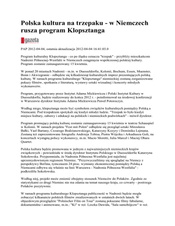Nadrenii Północnej-Westfalii w Niemczech osiągnięcia współczesnej polskiej kultury.