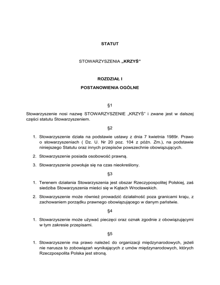 STATUT STOWARZYSZENIA „KRZYŚ” ROZDZIAŁ I