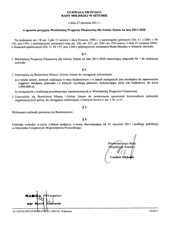 Wieloletnia Prognoza Finansowa Gminy Sztum na lata 20ll-2O2O