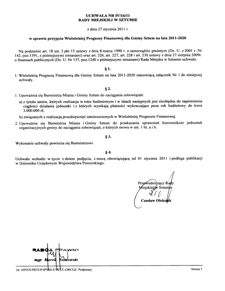 o finansachpublicmych (Dz. U. Nr 157, poz.l240 zpiliniejszymi zmianami) Rada Miejska w Sztumie uchwala: