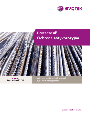 Protectosil® Ochrona antykorozyjna Wiodąca marka w budowlanych systemach zabezpieczeń Ochrona antykorozyjna przy użyciu preparatu Protectosil® Wydłużona żywotność i niskie koszty konserwacji stali zbrojeniowej w konstrukcjach żelbetowych Zarówno w budynkach, mostach, jak i garażach parkingowych konstrukcje żelbetowe stanowią podstawowy element budowlanych inwestycji prywatnych i publicznych. Wynika z tego konieczność ochrony przed korozją prętów zbrojeniowych, która może obniżyć stabilność mechaniczną konstrukcji. Aby zapobiec korozji, należy powstrzymać wnikanie wody i jonów chlorkowych do wnętrza materiału budowlanego. Protectosil® CIT to specjalny inhibitor korozji na bazie silanów, opracowany przez firmę Evonik. Cząsteczki Protectosil® CIT wnikają głęboko w strukturę i wiążą się chemicznie z materiałem budowlanym. Jeszcze jedna funkcja uzupełnia specjalne właściwości redukujące korozję: Protectosil® CIT przerywa prądy elektrolityczne prowadzące do korozji. Ta sprawdzona naukowo właściwość preparatu Protectosil® CIT pozwala zastosować go do renowacji konstrukcji zaatakowanych już przez korozję. W nowych konstrukcjach żelbetowych Protectosil® CIT wydłuża oczywiście trwałość konstrukcji i podnosi ich odporność na korozję. Protectosil® CIT redukuje proces korozji Uszkodzenie konstrukcji żelbetowych rozpoczyna się często od wniknięcia wody i jonów chlorkowych w materiał budowlany. Szczególnie w surowych warunkach klimatycznych wnikająca woda może spowodować szkody w przypadku stosowania soli zimowej lub solanki. W wyniku wiązania wodoru woda stosunkowo łatwo wnika w pory betonu, transportując jony chlorkowe. Gdy jony te dotrą do stali zbrojeniowej, rozpoczyna się korozja. Protectosil® CIT przeciwdziała obu tym procesom: • Specjalna struktura preparatu Protectosil® CIT przerywa prądy elektrolityczne, redukując korozję i powstawanie rdzy. • Protectosil® CIT zapewnia szczególnie głębokie zabezpieczenie przed wnikaniem wody i skutecznie zapobiega kontaktowi jonów chlorkowych z prętami zbrojeniowymi. Protectosil® CIT skutecznie zapobiegał korozji w garażu parkingowym przez ponad 11 lat! Bez zabezpieczenia Średnia szybkość korozji µA/cm2 1996 1997 Zabezpieczenie preparatem Protectosil® CIT w 1996 r. 1998 1999 2000 2001 2002 2003 2004 2007 0.7 0.6 0.5 0.4 0.3 0.2 0.1 0.0 limit aktywnej korozji Badanie obiektu: Garaż parkingowy w Monroe County Warunki panujące w garażach parkingowych sprzyjają korozji. W 1996 r. przeprowadzono pomiary prądów korozyjnych w garażu parkingowym w Monroe County, Pensylwania (USA). Wyniki pomiarów wykazały wysokie prawdopodobieństwo szkód, co skłoniło do zastosowania preparatu Protectosil® CIT podczas renowacji obiektu przeprowadzonej w tym samym roku. Coroczne testy wykonywane od 1996 r. dowodzą, że nawet w budynkach zaatakowanych już przez korozję jednorazowe zastosowanie preparatu Protectosil® CIT może znacznie wstrzymać postęp korozji. Modyfikacja masy przy użyciu preparatu Protectosil® DRY CIT Protectosil® DRY CIT to sypki proszek Jako sypki proszek o dobrych właściwościach dyspersyjnych w mieszankach betonowych nie wpływa on na kolor i wygląd zewnętrzny betonu. Jest nieszkodliwy zgodnie z niemiecką Ustawą Chemiczną (ChemG) i redukuje znacznie absorpcję wody. Oprócz tego, suche zaprawy z dodatkiem Protectosil® DRY CIT wykazują doskonałą zwilżalność. Ta sprawdzona naukowo właściwość preparatu Protectosil® DRY CIT pozwala stosować go do renowacji konstrukcji zaatakowanych już przez korozję. Oczywiście, w nowych konstrukcjach żelbetowych Protectosil® DRY CIT znacznie wydłuża trwałość konstrukcji i podnosi ich odporność na korozję. Protectosil® DRY CIT podnosi jakość różnych produktów Producenci prefabrykatów żelbetowych: stosują go jako inhibitor korozji w betonie konstrukcyjnym w zastępstwie saletry wapniowej lub domieszek aminowych. Producenci cementu: stosują go do wytwarzania gotowych do użycia wyrobów cementowych o właściwościach antykorozyjnych i hydrofobowych (redukcja absorpcji wody). Producenci zapraw renowacyjnych: 25-kilogramowe worki suchego cementu z dodatkiem lateksu polimerowego (gotowy do użycia preparat, konieczne jest jedynie dodanie wody i wymieszanie, wysoce wyspecjalizowany segment rynkowy, szczególnie w przypadku produktów szybko wiążących). Składnik dodawany do masywów betonowych (do fasad), zastępuje stosowane obecnie stearyniany. Właściwości • • • • wyjątkowo dobra stabilność przechowywania preparatu Protectosil® DRY CIT łatwość aplikacji i brak konieczności specjalnej obróbki dodatkowej wysoka stabilność termiczna zabezpieczony beton nie wykazuje zauważalnego spadku wytrzymałości na ściskanie po 90 dniach od związania • test na korozję betonu przeprowadzony w szwajcarskim stowarzyszeniu ds. badań nad korozją przyniósł pozytywne wyniki po 520 dniach (odpowiada oddziaływaniu zewnętrznych wpływów atmosferycznych przez 35 lat) Protectosil® DRY CIT zapewnia doskonałe długotrwałe zabezpieczenie betonu przed korozją. Właściwości chemiczne Reaktywne cząsteczki organosilanowe: • reagują z cementem i materiałem krzemionkowym w betonie • reagują z powłoką tlenkową żelaza i wzmacniają warstwę pasywacyjną • tworzą paroprzepuszczalną ochronę przed szkodliwymi substancjami rozpuszczalnym w wodzie R ´RO Si OR´ O R´ n Protectosil® DRY CIT zapewnia perfekcyjną ochronę antykorozyjną. Nawet w przypadku bardzo cienkich powierzchni betonowych. Test zewnętrzny przeprowadzony przez SGK (szwajcarskie stowarzyszenie ds. badań nad korozją) Próbka (przekrój poprzeczny) Cykle testu (okresy wilgotne / suche) • 5 dni okresu suchego w temperaturze 35°C i • 2 dni zanurzenia w roztworze NaCl • całkowity czas trwania testu: 520 dni 520-dniowy test odpowiada okresowi oddziaływania zewnętrznych