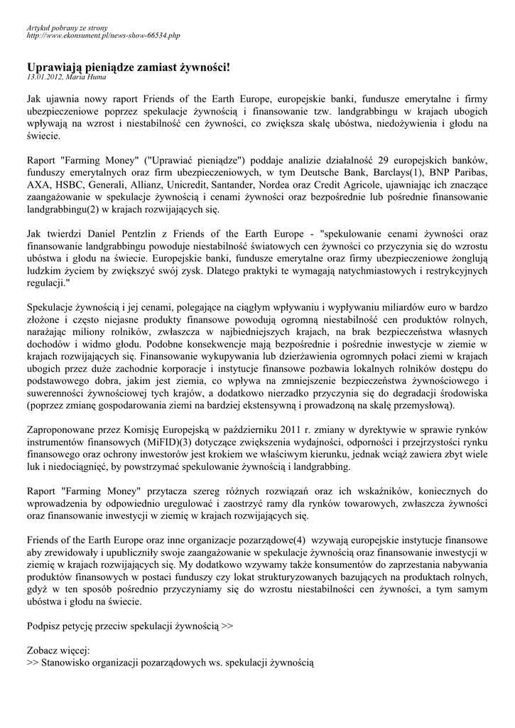 (4) Raport "Farming Money" powstał we współpracy Friends of the Earth Europe z takimi organizacjami jak: