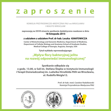 Zaproszenie - Instytut Immunologii i Terapii Doświadczalnej PAN