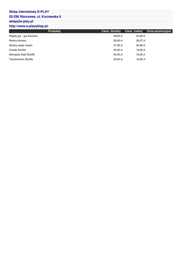 Sklep internetowy E-PLAY 02-296 Warszawa, ul. Kurzawska 6 sklep