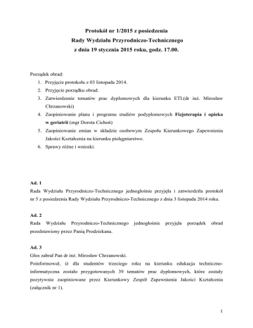Protokół nr 1/2015 z posiedzenia Rady Wydziału Przyrodniczo