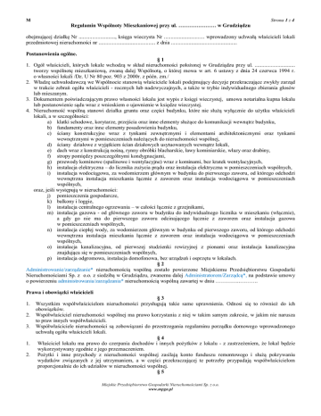 Regulamin Wspólnoty Mieszkaniowej