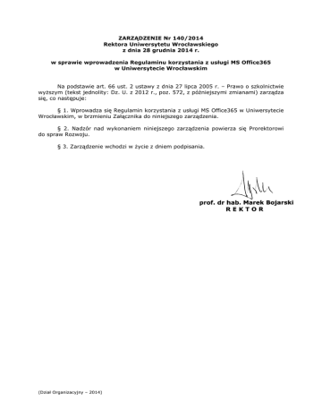 ZARZĄDZENIE Nr 140/2014 Rektora Uniwersytetu Wrocławskiego z