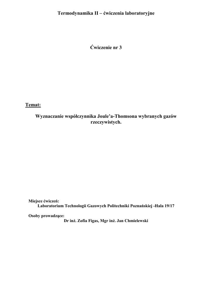 Efekt Joul`a-Thompson`a - Politechnika Poznańska