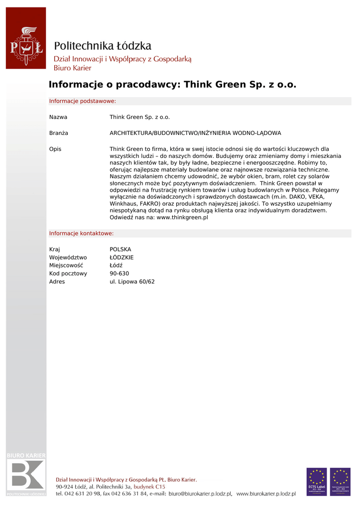 Informacje o pracodawcy: Think Green Sp. z o.o.