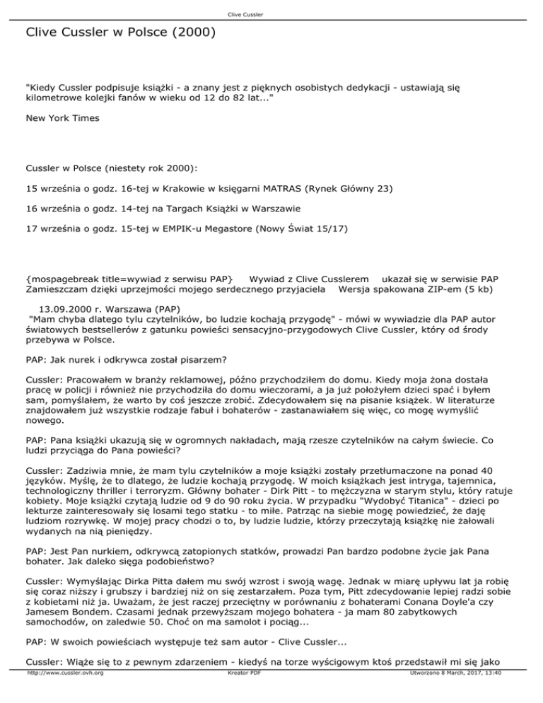 Cussler w Polsce (niestety rok 2000):