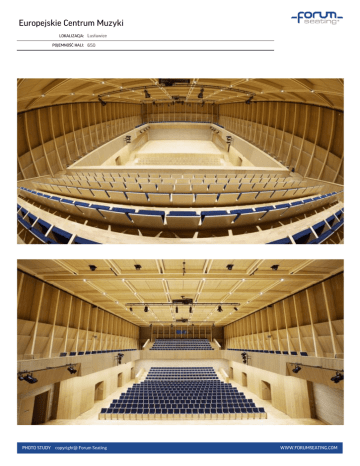 Europejskie Centrum Muzyki LOKALIZACJA: Lusławice POJEMNOŚĆ HALI: 650 PHOTO STUDY copyright@ Forum Seating WWW.FORUMSEATING.COM Europejskie Centrum Muzyki LOKALIZACJA: Lusławice POJEMNOŚĆ HALI: 650 PHOTO STUDY copyright@ Forum Seating WWW.FORUMSEATING.COM Europejskie Centrum Muzyki LOKALIZACJA: Lusławice POJEMNOŚĆ HALI: 650 PHOTO STUDY copyright@ Forum Seating WWW.FORUMSEATING.COM