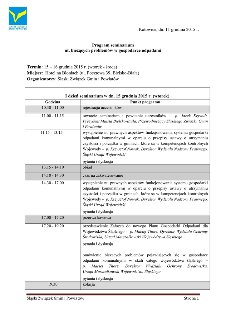 Program seminarium - Śląski Związek Gmin i Powiatów