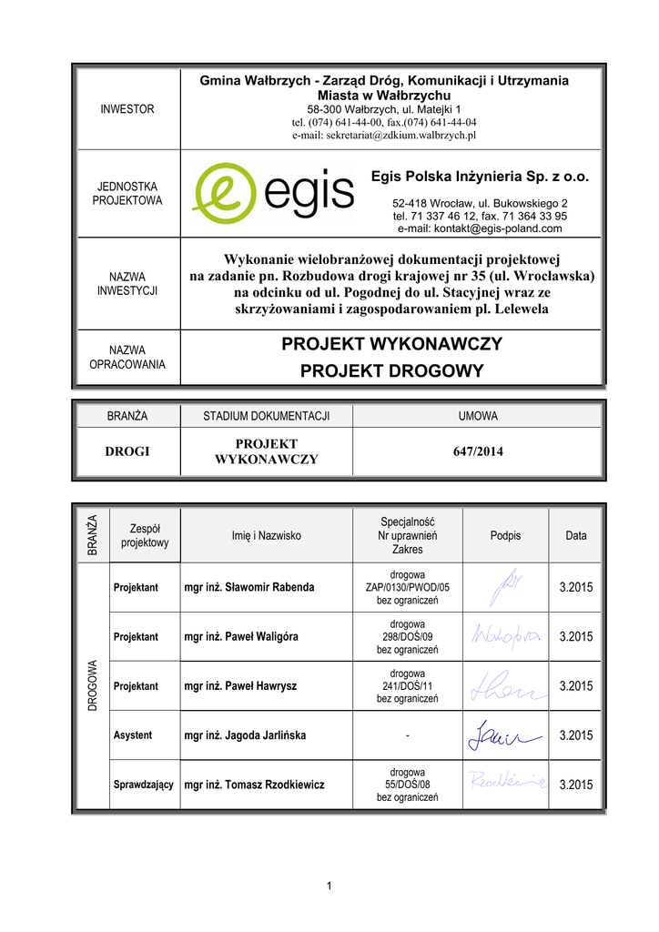 PROJEKT WYKONAWCZY PROJEKT DROGOWY