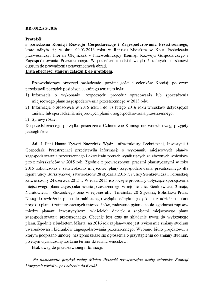 1 BR.0012.5.3.2016 Protokół z posiedzenia Komisji