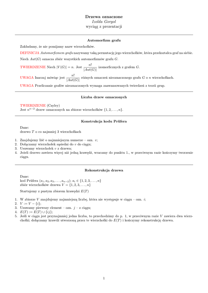 zbiór wierzchołków drzewa V = {1, 2, 3, . . . , n}