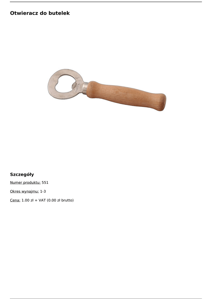 Otwieracz do butelek Szczegóły Numer produktu: 551 Okres wynajmu: 1-3 Cena: 1.00 zł + VAT (0.00 zł brutto) Powered by TCPDF (www.tcpdf.org)