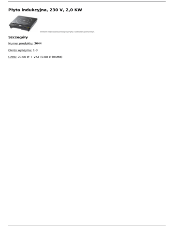 Płyta indukcyjna, 230 V, 2,0 KW Urz?dzenie nie jest przeznaczone do pracy ci?g?ej, w zastosowaniu przemys?owym. Szczegóły Numer produktu: 3644 Okres wynajmu: 1-3 Cena: 20.00 zł + VAT (0.00 zł brutto) Powered by TCPDF (www.tcpdf.org)