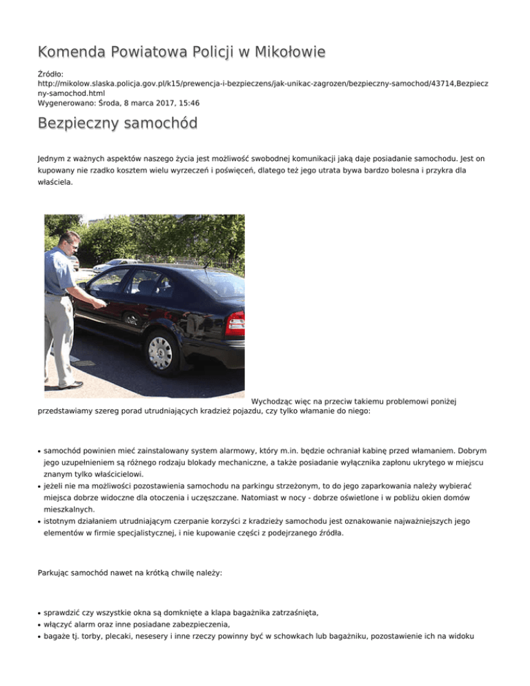 Komenda Powiatowa Policji w Mikołowie Bezpieczny samochód