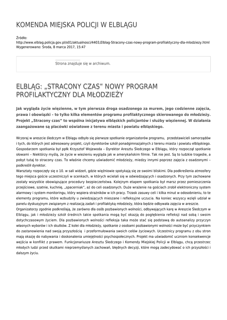 KOMENDA MIEJSKA POLICJI W ELBLĄGU ELBLĄG: „STRACONY