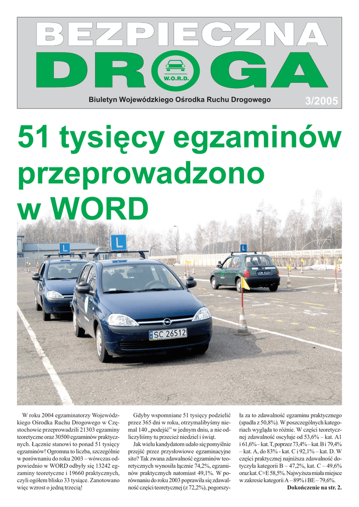 Biuletyn Wojewódzkiego Orodka Ruchu Drogowego 3/2005 51 tysiêcy egzaminów przeprowadzono w WORD W roku 2004 egzaminatorzy Wojewódzkiego Orodka Ruchu Drogowego w Czêstochowie przeprowadzili 21303 egzaminy teoretyczne oraz 30500 egzaminów praktycznych. £¹cznie stanowi to ponad 51 tysiêcy egzaminów! Ogromna to liczba, szczególnie w porównaniu do roku 2003 wówczas odpowiednio w WORD odby³y siê 13242 egzaminy teoretyczne i 19660 praktycznych, czyli ogó³em blisko 33 tysi¹ce. Zanotowano wiêc wzrost o jedn¹ trzeci¹! Gdyby wspomniane 51 tysiêcy podzieliæ przez 365 dni w roku, otrzymalibymy niemal 140 podejæ w jednym dniu, a nie odliczylimy tu przecie¿ niedziel i wi¹t. Jak wielu kandydatom uda³o siê pomylnie przejæ przez przys³owiowe egzaminacyjne sito? Tak zwana zdawalnoæ egzaminów teoretycznych wynosi³a ³¹cznie 74,2%, egzaminów praktycznych natomiast 49,1%. W porównaniu do roku 2003 poprawi³a siê zdawalnoæ czêci teoretycznej (z 72,2%), pogorszy- ³a za to zdawalnoæ egzaminu praktycznego (spad³a z 50,8%). W poszczególnych kategoriach wygl¹da to ró¿nie. W czêci teoretycznej zdawalnoæ oscyluje od 53,6% kat. A1 i 61,6% kat. T, poprzez 73,4% kat. B i 79,4% kat. A, do 83% - kat. C i 92,1% kat. D. W czêci praktycznej najni¿sza zdawalnoæ dotyczy³a kategorii B 47,2%, kat. C 49,6% oraz kat. C+E 58,5%. Najwy¿sza mia³a miejsce w zakresie kategorii A 89% i BE 79,6%. Dokoñczenie na str. 2. 51 tysiêcy egzaminów przeprowadzono w WORD Dokoñczenie ze. str. 1. Prócz tego w kategorii A1 zanotowano 71,4%, w kat. D 61,8% i w kat. T 66,7%. Rozmaita by³a równie¿ liczba zdawaj¹cych na poszczególne kategorie prawa jazdy. W czêci teoretycznej dominowa³a kategoria B a¿ 18960 egzaminów, kat. C 1293 ju¿ zdecydowanie ustêpuje. W kat. A pojawi³o siê 708 egzaminów, w kat. A1 ledwie 28, w kat. D by³o ich 189, za w kat. T 125. W liczbie egzaminów praktycznych równie¿ zdecydowanie przoduje kategoria B 25844 podejcia, w kategorii C 1889, w kat. CE natomiast 1643. Tylko 21 razy zdawano egzamin praktyczny w kategorii A1, choæ w kat. A by³o ich 620. Inne kategorie: BE 103 podejcia, D 275 i T 105. Za brak tego przedmiotu mo¿na otrzymaæ mandat i karne punkty Pamiêtajcie o ganicy! Do obowi¹zkowego wyposa¿enia ka¿dego samochodu nale¿y ganica. Sensu tego przepisu chyba nikomu uzasadniaæ nie trzeba choæ nikt nie prowadzi takiej statystyki, na pewno wiele pojazdów uda³o siê uchroniæ przed ca³kowitym zniszczeniem wskutek po¿aru w³anie dziêki u¿yciu ganicy. Przybyli na miejsce stra¿acy musieliby ju¿ tylko dogasiæ dymi¹cy wrak Ganicê w aucie trzeba mieæ nakazuje to prawo i zdrowy rozs¹dek. Powinna byæ jeszcze odpowiedniej wielkoci, co przek³ada siê bezporednio na iloæ substancji ganiczej wewn¹trz metalowej obudowy. Posiadaczom samochodów osobowych wystarczy typowa, niewielka ganica, jak¹ mo¿na kupiæ na ka¿dej stacji benzynowej. Im wiêkszy pojazd, tym potrzeby co do wielkoci ganicy rosn¹, natomiast samochody specjalne, np. cysterny do przewozu paliw musza ju¿ spe³niaæ bardzo ostre warunki co do wyposa¿enia w rodki ganicze. Od kiedy wprowadzono obowi¹zek posiadania ganicy, trwa dyskusja, gdzie j¹ trzymaæ. Szczególnie w ma³ych pojazdach dodatkowy przedmiot wewn¹trz kabiny mocno zawadza. Mo¿na zaakceptowaæ przewo¿enie ganicy w baga¿niku, pod warunkiem, ¿e w razie potrzeby bêdzie j¹ mo¿na wyj¹æ bez ¿adnych przeszkód. Jad¹c na urlop i pakuj¹c walizki do baga¿nika zwróæmy na to uwagê, by nie odkopywaæ potem ganicy spod zwa³ów baga¿u. To mo¿e Wielu kierowców przewozi w baga¿niku wiêcej ni¿ jedn¹ ganicê. byæ kwestia czyjego ¿ycia. W ¿adnym wypadku nie wolno k³aæ ganicy na pó³ce pod tyln¹ szyb¹! W razie zderzenia poleci niczym pocisk ciê¿kiego kalibru przez kabinê i w razie uderzenia w g³owê mo¿e spowodowaæ powa¿ne obra¿enia. Skoro ganicê ju¿ mamy, pamiêtajmy o jej regularnych przegl¹dach technicznych. Trze- ba po prostu znaleæ serwis sprzêtu przeciwpo¿arowego, gdzie fachowiec sprawdzi cinienie wewn¹trz ganicy i jej sprawnoæ. Bywa³o, ¿e pal¹cy siê pojazd próbowano ratowaæ ganic¹, która wydawa³a z siebie tylko lekki syk uchodz¹cych resztek sprê¿onego powietrza. Je¿eli ganica jest w porz¹dku, serwis powinien to potwierdziæ na specjalnej nalepce, z dat¹ terminu kolejnego przegl¹du. Ganica po up³ywie tego terminu bêdzie traktowana jako niesprawna i w razie kontroli drogowej policjant uzna, ¿e ganicy po prostu nie mamy. Poniewa¿ jej posiadanie jest obowi¹zkowe, konsekwencj¹ mo¿e byæ mandat karny, no i punkty na konto. Nie brakuje kierowców, przewo¿¹cych w kufrze dwie ganice jedn¹ obowi¹zkow¹ i drug¹ dodatkow¹, zazwyczaj wiêksz¹ od pierwszej. Tej drugiej nie poddaj¹ ju¿ przegl¹dom, za wo¿¹ dlatego, ¿e ich zdaniem niewielkie ganice nie daj¹ szans ugaszenia po¿aru np. w komorze silnika, a na drodze mo¿e akurat nie byæ w pobli¿u ¿adnego innego pojazdu. Ta druga ganica bêdzie traktowana przez policjê po prostu jako baga¿, lecz w razie braku wa¿noci pierwszej, nie pomo¿e nam nawet pe³en baga¿nik ganic Biuletyn WORD w Czêstochowie, www.word.czest.pl Wydawca: WORD, ul. Hallera 1, tel. 361-60-09 Druk: KAPITALIK, tel. 0607-452-297 ! Lepiej tankowaæ na firmowych, mimo ¿e dro¿szych stacjach Uwaga na trefne paliwo Nikomu nie wypada ¿yczyæ znalezienia siê w sytuacji, gdy zatankujemy paliwo na stacji benzynowej, po czym przejechawszy pewn¹ liczbê kilometrów samochód odmówi nam pos³uszeñstwa. Przyczyn¹ mo¿e byæ bowiem fatalna jakoæ paliwa, które znalaz³o siê w zbiorniku. To niestety coraz bardziej rozprzestrzeniaj¹cy siê proceder, za chêtnych do rozprowadzania fa³szowanego paliwa na stacjach nie brakuje. Dziêki stosowaniu rozmaitych komponentów, najczêciej tañszych od benzyny czy oleju napêdowego, obci¹¿onych mniejszymi stawkami podatkowymi, otrzymany w koñcu produkt paliwem trudno go nazwaæ kosztuje o wiele 